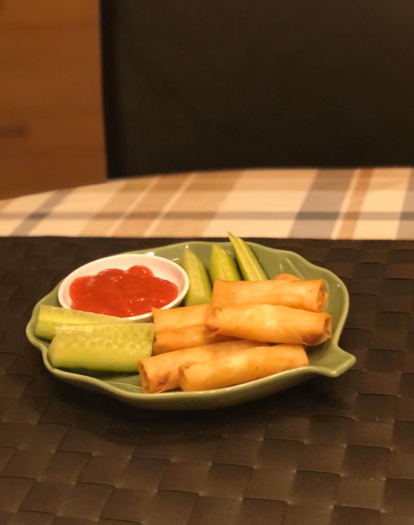 De här krispiga vårrullarna med chilisås och lite grön kan man väl inte avstå ifrån.