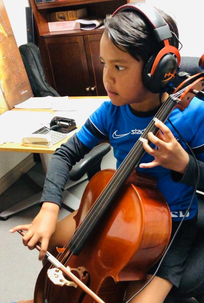 En timme före vi åkte ut på en Italiens restaurang, Sami måste spela in en sång för Kulturskolans online konsert. Han spelade in Franskvisa sången med sin Cello som sedan ska lämna in till musik läraren. Sången var ganska svårt för honom men han lyckades göra det.