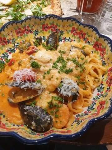 Vid sex tiden var vi – för första gången i år – ute på en nyöppnade Italiens restaurang Basta! och käkade middag. Vi firade inget utan vi var ute för att må lite bättre, se på människor vi inte se på länge.