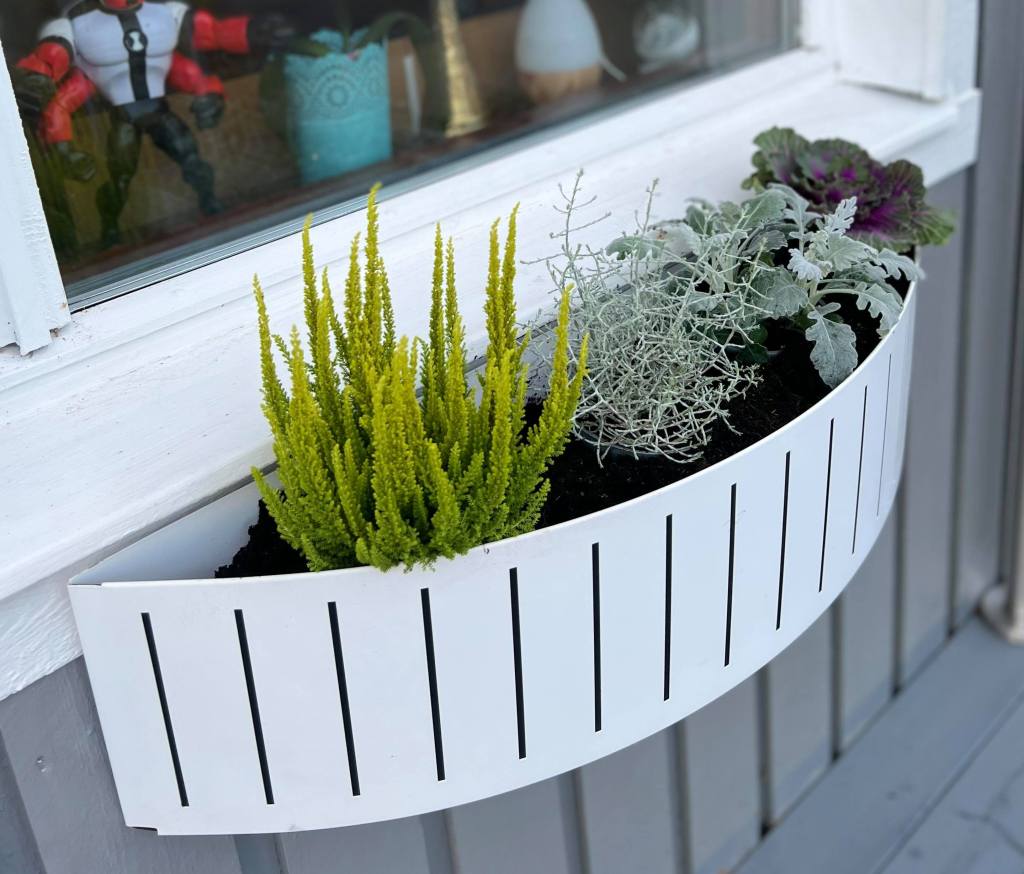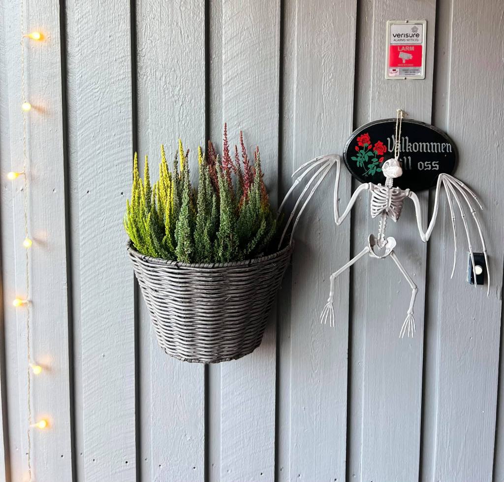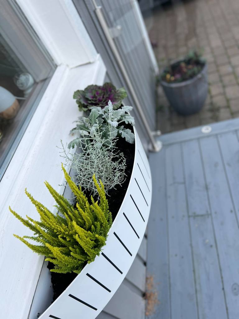 lillaMorsan hade ingen kurs idag så hon passade på att pynta `de gappande balkonglådorna´ sedan länge, med höstblommor. Och som ni ser lillemannen också vill hänga sin gubbe för – a little touch of Haloween – ❤