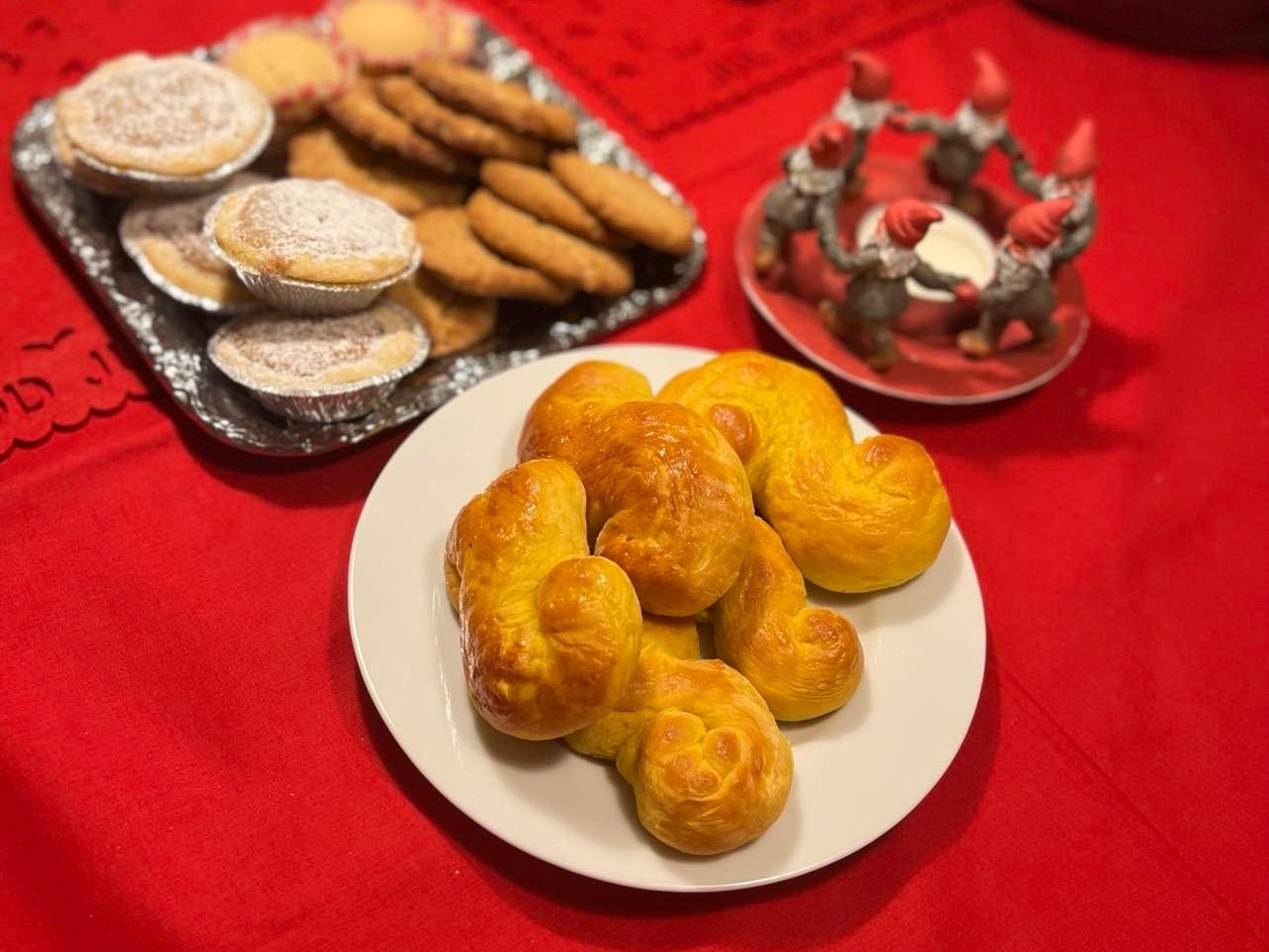 Eller ju… vi var faktisk hos min låtsas föräldrar som bjöd oss på fika. De hade stannat hemma och firade Jul och Nytt År utan ett besök från oss, sitt barn och barnbarn. Hon tog fram de sista lussebullarna som hon bakade tillsammans med vår son Sami innan Advent. Vi hade det mysigt så att säga 🙂